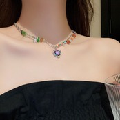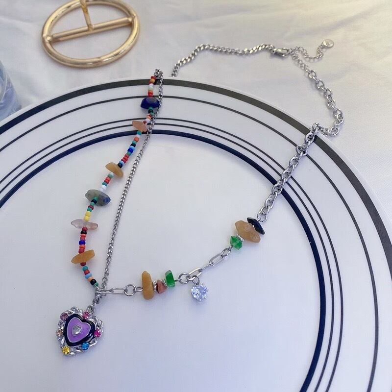 Colorful Peach Heart Beaded Necklace